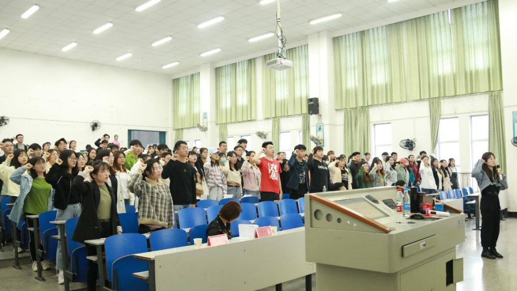 本次大会共四项议程,分别是:奏《国际歌》、新发展党员宣誓、观看学习视频、傅早霞副书记总结讲话。在慷慨激昂的《国际歌》声中,全体与会人员肃立,新发展党员整齐有序站立于党旗前,学生党员胡舒玥同志带领全体新发展党员庄严宣誓。接着观看了《习近平在党史学习教育动员大会上发表重要讲话》、《一百堂党史课》等学习视频。视频中习近平总书记在党史学习教育动员大会发表重要讲话,对党史学习教育进行全面动员和部署,为开展好党史学习教育指明了方向,提供了根本遵循。