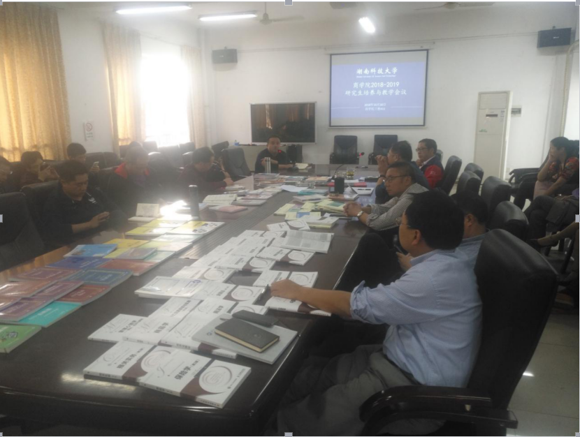 金沙js1005线路副院长颜剩勇教授带领导师们学习了《湖南省全面落实研究生导师立德树人职责的实施细则》、《湖南科技大学硕士研究生指导教师管理办法》和金沙js1005线路研究生导师招生资格确定细则等文件,传达了最新的研究生培养与教学的政策动态,分析了研究生培养与教学的现状,并对培养方案的修订做了具体要求。