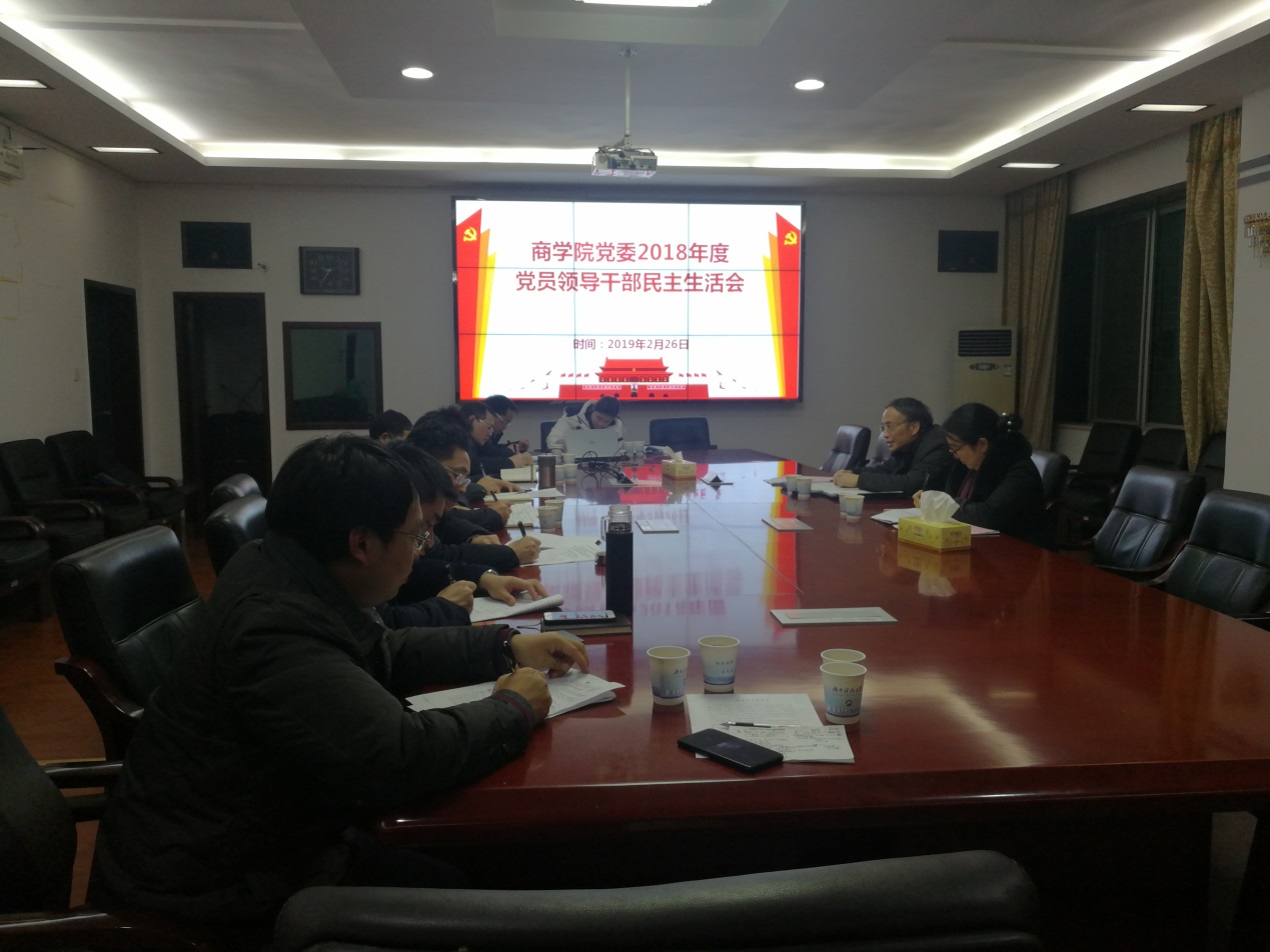 潘爱民就此次民主生活会前期准备工作情况进行了说明,通报了上年度民主生活会整改落实情况,并代表院党委班子作2018年度民主生活会对照检查发言。在汇报中,潘爱民着重从在政治理论学习、执行组织决定、对党忠诚、敢于担当和切实履责、深入贯彻纠“四风”方面、廉洁自律等六个方面查找存在的突出问题;提出下一步的努力方向和整改措施:一是采用党委中心组集体学习的方式,深入学习了十九大报告、党章党规和习近平总书记系列重要讲话精神,加强党性锻炼,切实在思想上高度信赖、理论上深刻认同、政治上坚决维护;二是深入推进全面从严治党。把全面从严治党要求落实到学院教学科研的全过程;三是不断改进作风建设,围绕治“懒”、治“浮”、治“庸”、治“软”解决问题;四是贯彻落实好全国高校思想政治工作会议精神,坚持社会主义办学方向,坚持以马克思主义为指导,坚持党对高校的领导,增强“四个自信”。