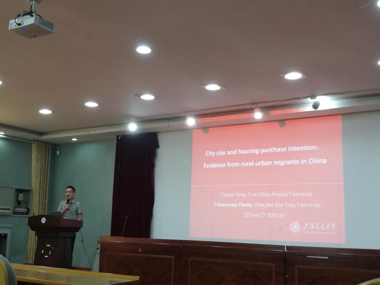 2019年6月27 日(星期四)下午3:00,由我院举办的主题为 “城市规模和购房意愿:来自中国城乡移民的证据”的学术报告在三教101学术报告厅举行,主讲嘉宾为上海交通大学中国城市治理研究院、国际与公共事务学院张传勇研究员。本次讲座由经济系主任王鹤副教授主持,我院部分老师和在读博士、硕士研究生参加了讲座。