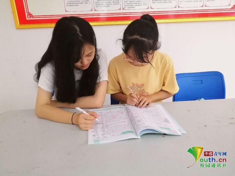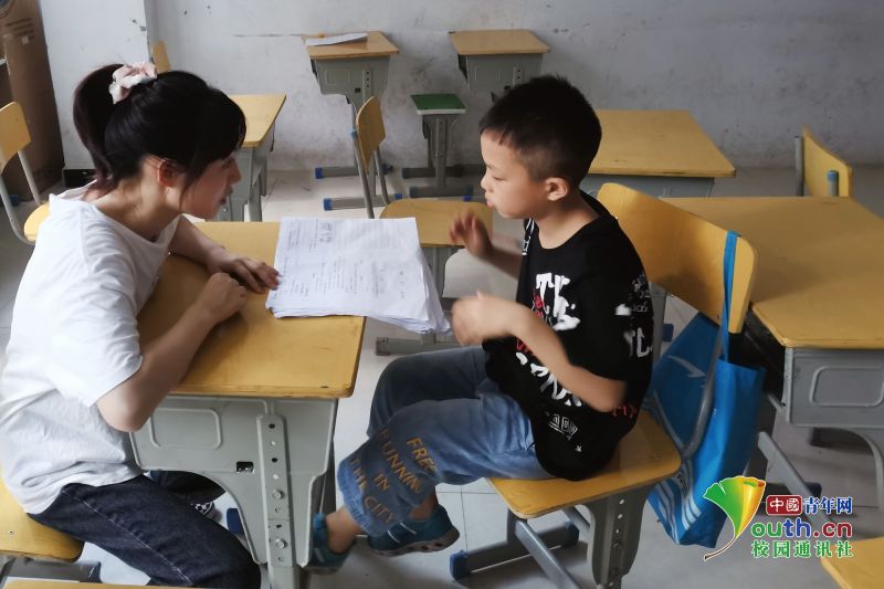 图为志愿者在给孩子们一对一辅导学习