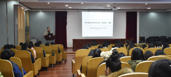2017年12月15日星期五上午9:30,金沙js1005线路立言讲坛第一百二十七讲“如何看待实体经济企业降成本问题?”于三教101学术报告厅举行。本次讲座由中国财政科学研究院博士生导师徐玉德教授主讲。金沙js1005线路副院长贺胜兵教授主持讲座,金沙js1005线路MPAcc中心主任刘建民博士,会计与财管系罗文兵博士、唐久芳博士等老师出席,2016和2017级博士研究生、硕士研究生及部分相关专业本科生参加了本次讲座。