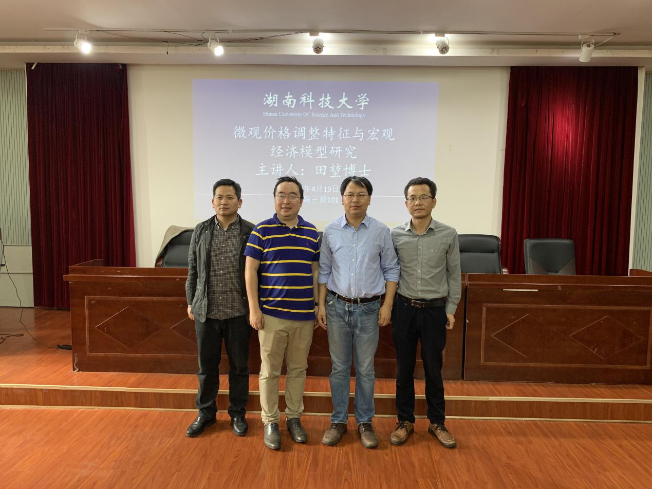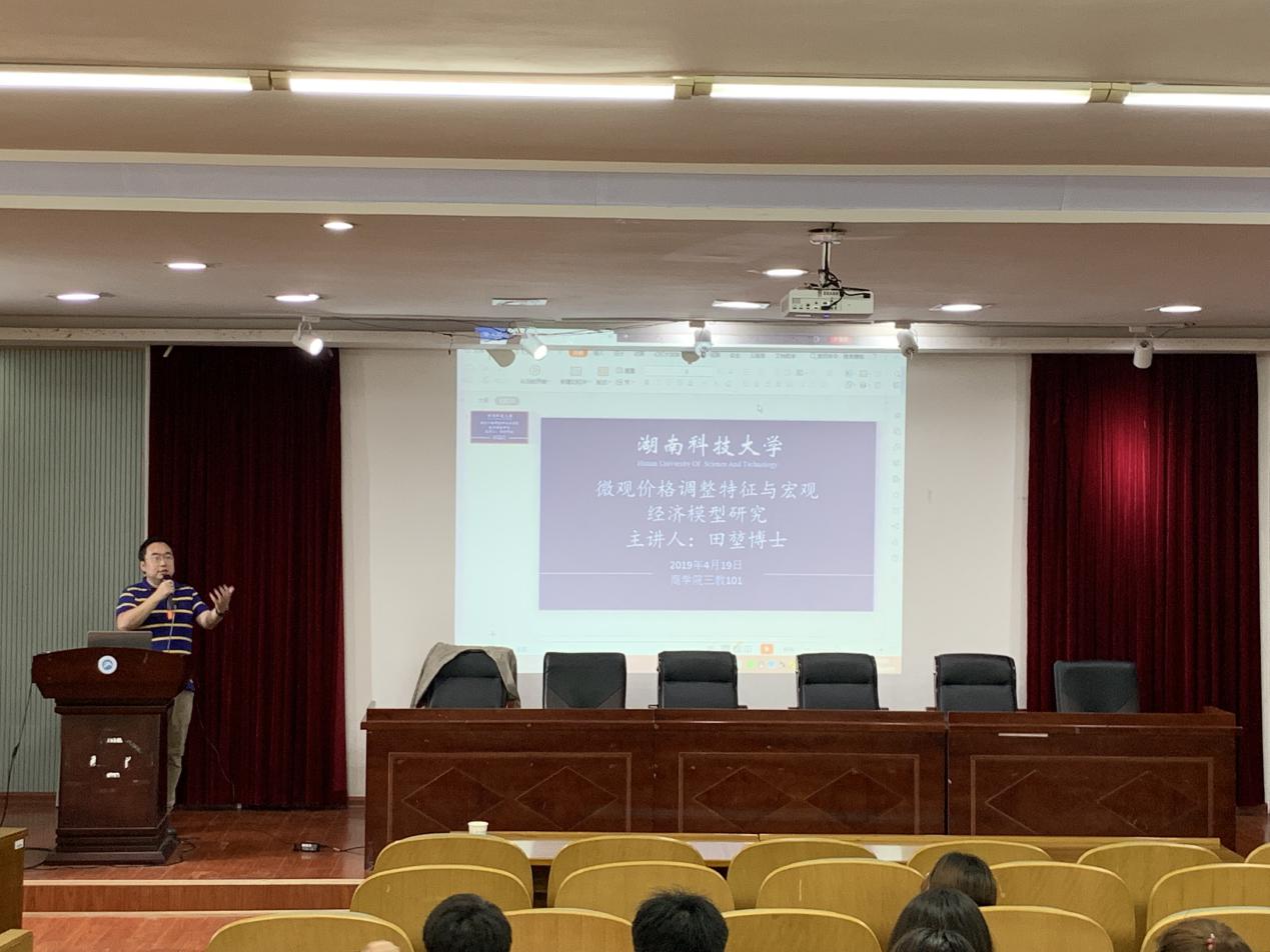 2019年4月19 日(星期五)下午14:30,由我院举办的主题为“微观价格调整特征与宏观经济模型研究”的学术报告在三教101学术报告厅举行,主讲嘉宾为英国安格利亚大学田堃博士。本次讲座由贺胜兵副院长主持,金沙js1005线路部分老师和在读博士、硕士研究生参加了讲座。