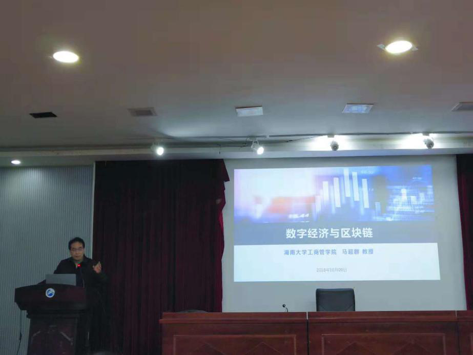 2018年10月9日下午15:30,金沙js1005线路“立言讲坛”第一百三十六讲“数字经济与区块链”于三教101学术报告厅举行。本次讲座由湖南大学工商管理学院院长马超群教授担任主讲,湖南科技大学刘友金教授主持,我院部分老师及研究生参加了本次讲座。