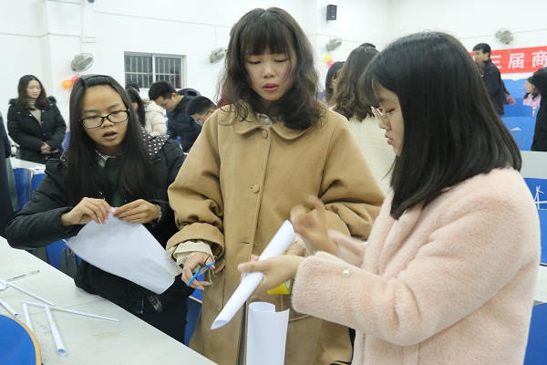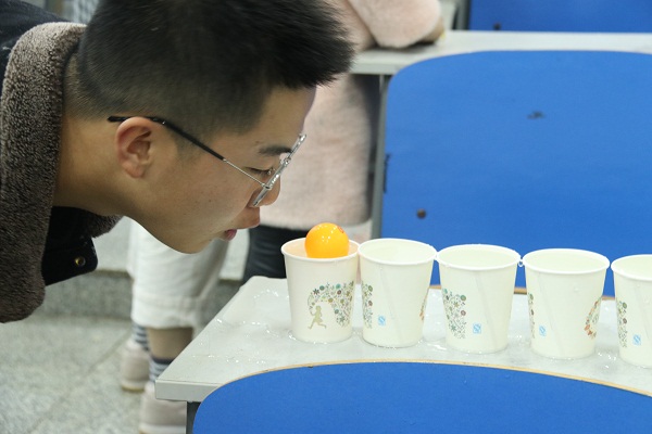 竟赛采用趣味设计的形式,分为立矩悬赏、吹乒乓球、A4斜塔三轮,实践活动内容涵盖了立体空间设计思维、力学结构思想、材料性质分析等多领域知识。比赛一开始,参赛同学们怀着对科技的向往和激情,大展身手。竞赛负责人之一黄辅仁说道:“比赛过程中我看到同学们充分展示了自己的智慧,他们相互学习,共同进步。”同时他还介绍,立矩悬赏,一个个不同的三角支架,是力学运用的体现;乒乓球的滚动,是力度的掌握;而A4纸塔的搭建,则是协作与技巧的结合。