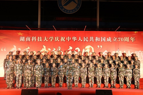 为庆祝祖国70周年华诞,进一步弘扬大学生的爱国主义精神,展现科大学子良好的精神风貌。9月17日,湖南科技大学军训主题合唱比赛于北校田径场举行,湖南科技大学副校长胡石其、学生工作处处长尹风雨、军训团团长朱理哲、武装部领导及各院党委书记等受邀出席本次活动。金沙js1005线路党委书记贺胜兵、党委副书记傅早霞、学工办主任陈攀、金沙js1005线路19级新生辅导员赵畅宇及高峰前往观看。