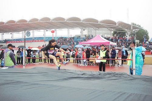 随着每一位选手的检录完毕,各选手皆进入准备状态。金沙js1005线路的三位运动健儿在等候区做几组高抬腿,保持身体热度,为接下来的跳高做准备。她们面对眼前待跃过的横杆,从容不迫,誓以“鲤鱼跃龙门”的劲头,一跃冲天。助跑,一步两步三步,背身一跃,轻盈跃过,行云流水的动作间,周梦真顺利完成了首轮过杆。比赛开始不久就下起了雨,场地变得湿滑,跳高助跑成了最艰难的动作。发力困难、摔倒、受伤这些插曲都无法浇灭选手们的热情,商院三位选手依旧精神饱满、斗志昂扬。最终,在女子跳高比赛中,金沙js1005线路李田和张颖止步首轮,周梦真最终取得第七名的佳绩。