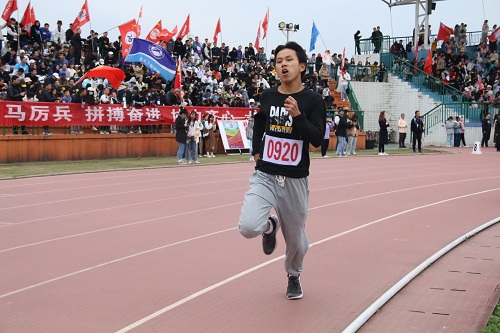 比赛来到第二圈时,赛道旁欢呼加油声愈加热烈,观众席上的同学们激情呐喊、紧张注视。竞技场上的选手们在最后的冲刺阶段,即使十分疲惫却仍然坚持不懈、勇往直前。选手们都在最后一刻里拼尽全力,奋力奔向终点的红线。