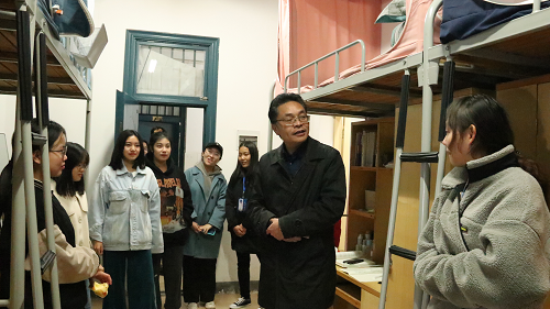傅早霞就宿舍分布与作息时间等基本问题同主席团成员与宿管部部长进行了解后,便展开了本次下寝关怀活动。在下寝过程中,傅早霞副书记就学习、生活、大学规划等方面同学生们进行了详细交流,深度了解了学生们对大学生活的适应情况,并做出了相关建议。
