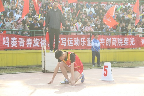 女子组200米预赛率先进行。运动员们神情肃穆,聚精会神地等待着发令员的枪声。场外的观众也不由自主的放轻了声音。“砰”一声清脆的枪响,打破了凝固的空气,观众席立刻沸腾起来。院旗、班旗如海浪般阵阵翻涌,鼓声、哨声如雷鸣般响彻云霄。8:33,期待已久的男子组200米预赛开始,场下的运动员们努力地进行热身准备活动。他们气势如虹,英姿飒爽,好比正冉冉升起的艳艳骄阳。“嗖”一声,便如离弓之箭向着终点跑去。最终,金沙js1005线路运动健儿们不负众望,赛出了风格与水平,成功进入了下午即将来临的决赛。金沙js1005线路观众席也热议着我院运动健儿们优异的表现,话语中流露出掩饰不住的自豪。