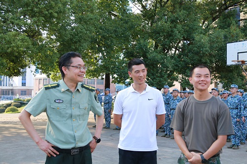 为了解金沙js1005线路新生军训情况,9月23日下午,湖南省军区朱参谋一行与金沙js1005线路党委副书记傅早霞来到训练场地,对正在紧张训练的2021级新生及带队教官亲切慰问。