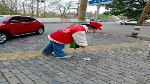 上午11: 00左右,街道上人流量减少,志愿者们一手持着火钳,一手拿着布袋,目视地面,细细寻找,清理垃圾桶周围的垃圾,完成了本次垃圾分类劝导活动的收尾工作。