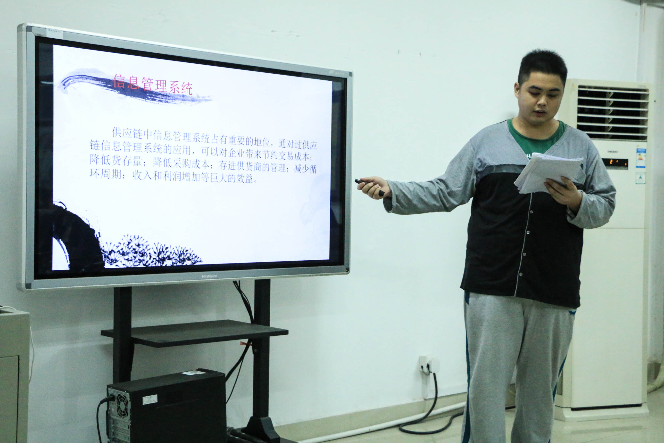 赛前,向院长在发言中指出:“我院主要面向社会培养具有企业家精神、从事社会财富创造的社会主义建设者。”他强调:“我们的学生除了要从书本中学习理念思想之外,更重要的是要在实践中学习提升自己。”随后,大赛正式进入答辩环节,九支队伍陆续上台用ppt展示了各自的作品,回答老师提出的问题,气氛活跃而又紧张。其中,许桓凯带领的第六小组就车辆、仓储等问题用自制的APP进行了生动细腻的讲解,新颖生动的答辩方式吸引了在座众多人的眼球,评委们也连连点头称赞。其他参赛队伍的方案也都新颖别致、各具特色。演示结束后,评委老师对各队伍的方案进行了点评,对选手们的表现给予肯定的同时指出他们所设计的方案在整体和细节上的不足。