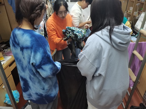 活动结束后,大家将收集到的衣物带至三教一楼进行整理分类,然后重新打包。活动最后,负责人与志愿者们亲切交流,总结活动心得。