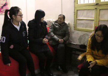 崔正义老人从老伴去世后已独居20多年,只有一只名为“点妹子”的小狗陪伴了她七年。一进崔奶奶的屋子,志愿者就开始忙碌起来,“点妹子”一直跟在他们兴奋地摇着尾巴。他们主动帮老人擦桌子、擦风扇,有的则陪老人聊起了天。在聊天过程中,她和大家诉说起了自己的回忆,房间里时不时传出志愿者和老人的笑声,当老人提起自己生活上的困难时,大家及时安慰老人:“放心,我们会一直陪着您,有什么困难尽管说,我们会帮助您的!”活动的负责人李玉玲笑着说。坐着的老人笑得像个小孩,不停说着“谢谢”。