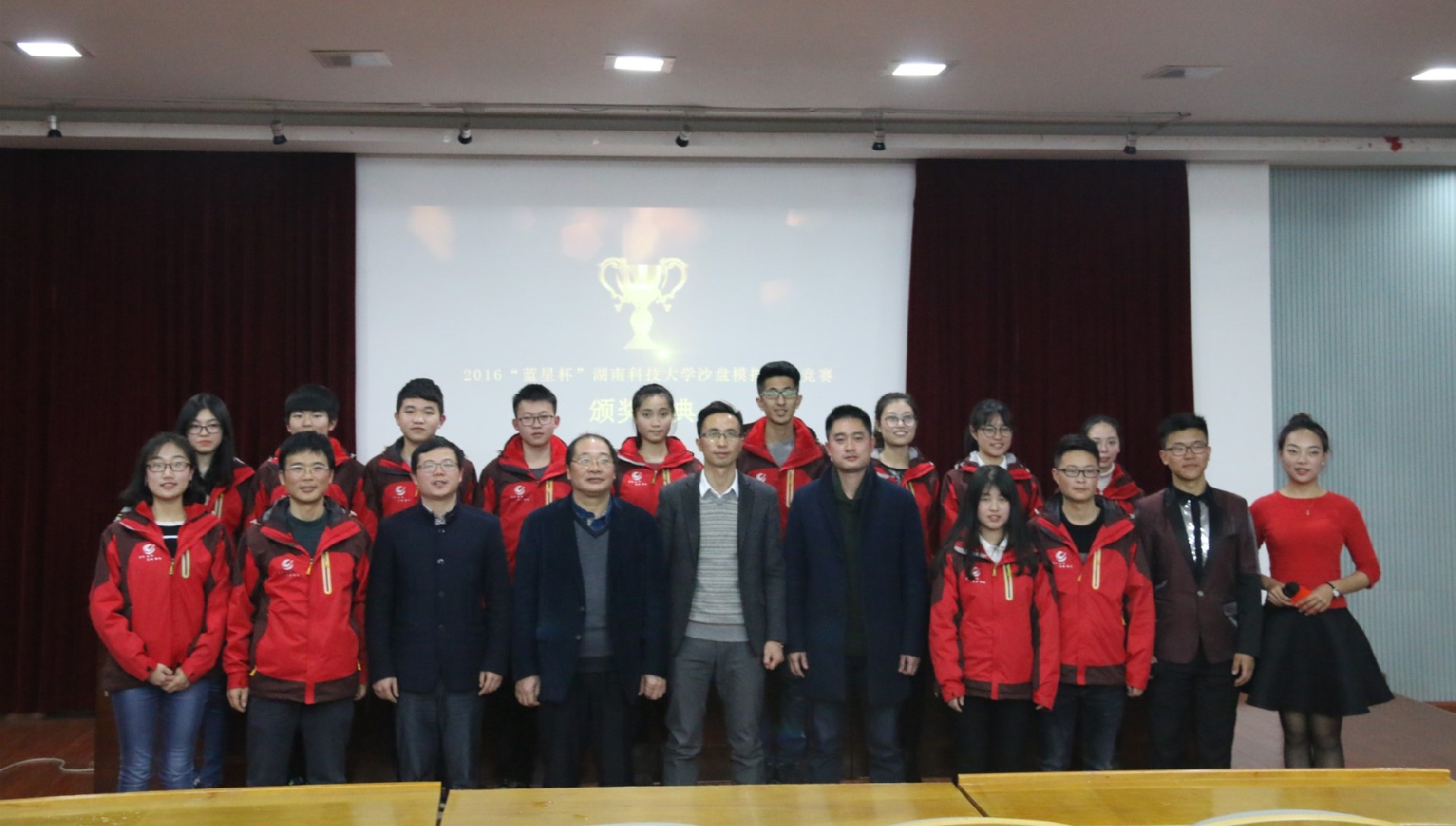 “今朝运筹沙盘,明日决胜商场。”12月18日19:30,2016“蓝星杯”湖南科技大学沙盘模拟经营竞赛颁奖典礼于第三教学楼101拉开了帷幕。此次活动由我校组委会主办,特邀教务处副处长罗建文教授、校团委书记马缤辉博士、学生工作处副处长罗登辉老师、金沙js1005线路副院长邓淇中博士、金沙js1005线路经管实验中心主任童杰成老师等作为嘉宾出席此次典礼。