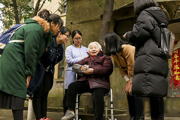 “小边,你们来了!”3月11日下午,南盘岭老年陪护中心的老人们亲切地同刚进门的金沙js1005线路青年志愿团的同学们打招呼。“杨阿姨,最近身体怎么样?”15级经济学专业的边玉立挽着杨阿姨迎上来的手亲切地问着。“看到你们又来看我们,我们的身体更好了!”杨阿姨拉着“小边”向院子里走去。