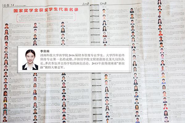 我校2016届国家奖学金获得者李欣桐优秀事迹被《人民日报》刊发