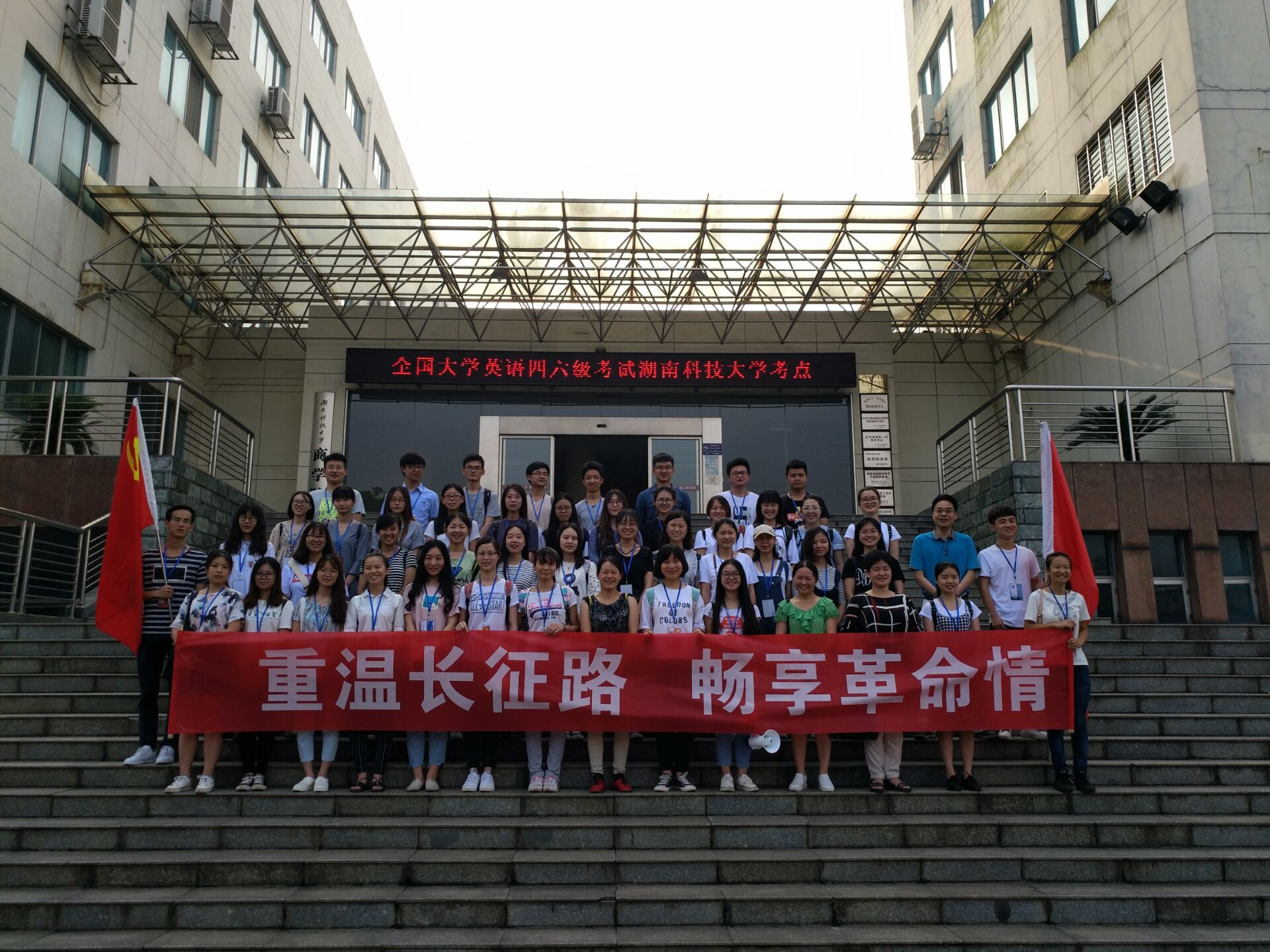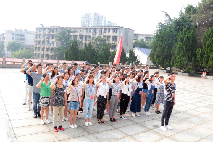 早晨7:30全体人员集合完毕,准时开拔。在刘彩老师的带领下,同学们重走红军长征路,从三教出发走二环线,到桃园路口转建设北路,一行人步行70分钟到达湘潭烈士陵园,在炎炎烈日下体验红军艰苦卓绝、百折不挠、英勇无畏的革命精神。