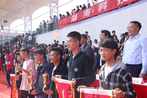 10月19日11:00,湖南科技大学2019年秋季运动会闭幕式于北校田径场圆满落幕。湖南科技大学校党委书记刘德顺,副校长胡石其、刘友金、廖湘岳、党校办主任戴树银、学工处处长尹风雨、校团委书记马缤辉等一行人出席了本次闭幕式。各学院师生也参加了本次闭幕式,共同为2019年秋季运动会画上圆满句号。