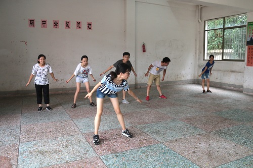 为给湘潭市乌石镇乌石敬老院中心的老人举办文艺汇演,2017年8月5日下午,我院“三下乡”实践活动小组正在进行紧张排练。