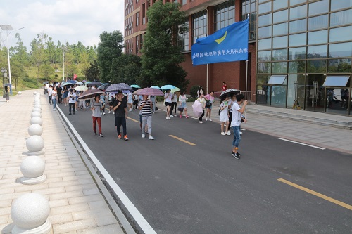 下午一点左右,我院新生从三教出发,浩浩荡荡的队伍踏上了这半日游的旅途。从三教到五教,太阳热情似火,但这条路却因大树的遮挡而倍感凉爽。凉风习习,欢声笑语,新面孔的到来为大树增添了些许活力。学长学姐们一边带路,一边进行着讲解,向同学们介绍了游泳池、体育馆和教学楼,并贴心地为同学们介绍学校的种种情况。
