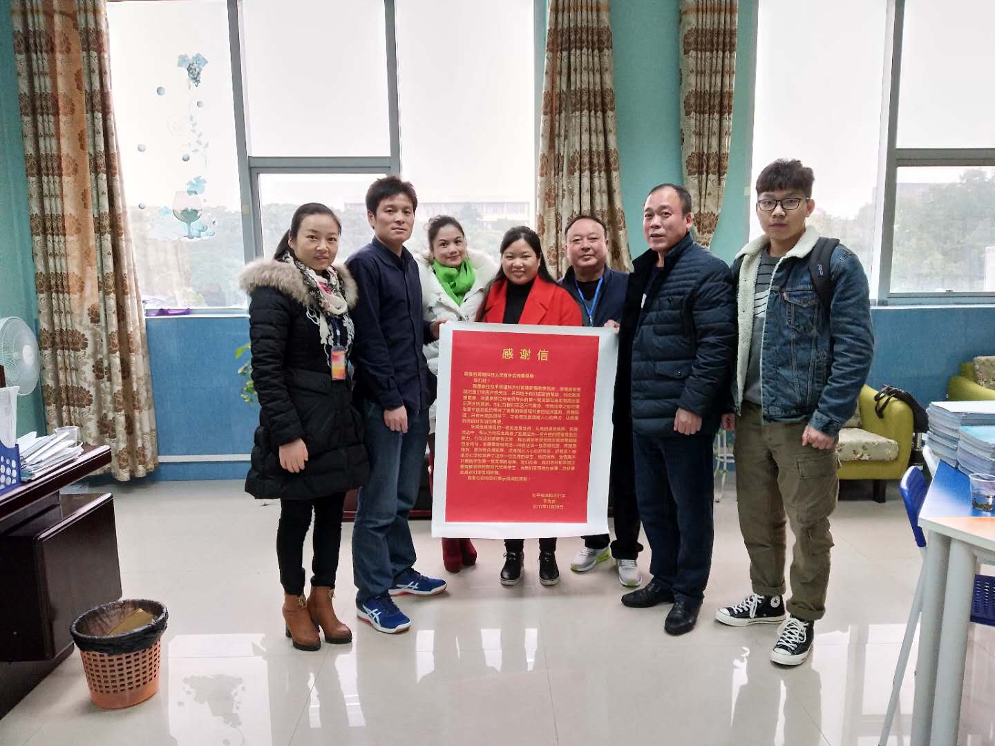 11月20日上午,湖南科技大学第三教学楼227室接待了五位特殊的来客,这五位客人分别是科大社区党总支部书记龙国奇、副书记张俊芳、组织委员付月玲、宣传委员段立红和纪检委员盛晓娥。他们给金沙js1005线路学生第一党支部送来了一份特殊的礼物——来自科大社区建新组扶贫对象龙锦玲的儿子李先庆的一封感谢信,以感激我院学生第一党支部对其一家的关心与帮助。同时,他们表示还将赠予我院学生第一党支部锦旗以示感谢。