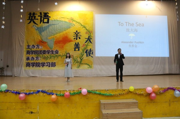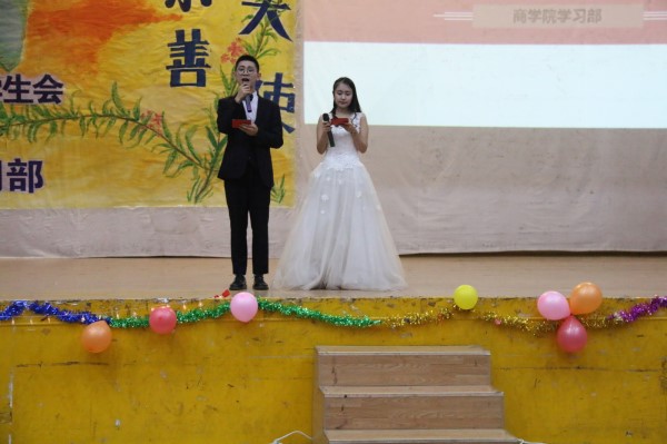 12月8日晚上19:00,金沙js1005线路第16届英语亲善大使大赛在南校活动中心精彩上演,本次活动由金沙js1005线路学习部承办,以“嗨翻英语”为主题。此次比赛由外教Alex老师和第十四届英语亲善大使比赛冠亚军柯毅、谢雪雯担任评委,17级会计三班的王智和国贸三班的任雪曦主持,金沙js1005线路17级全体学生参与观看。