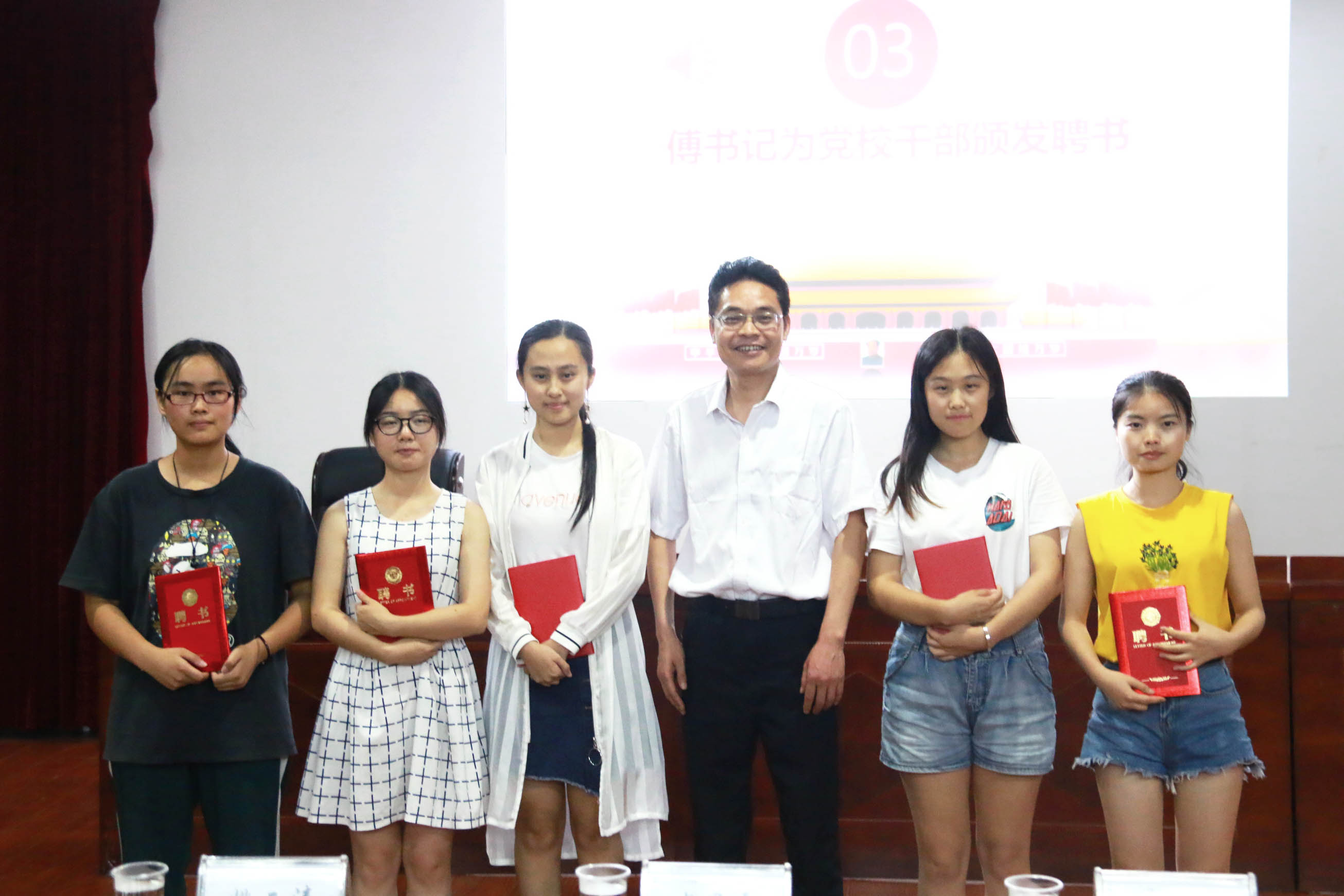 庄严的国际歌响起,党员们都全体起立,肃穆而待。紧接着,此次新发展党员进行了入党宣誓,老党员重温誓词。会上,全体学生党员观看了《建党伟业》,视频让广大党员深入感受到中国共产党艰苦奋斗、吃苦耐劳的伟大精神,鞭策着当代青年学生以史为鉴,不忘初心,艰苦奋斗。随后,傅早霞副书记为金沙js1005线路分党校副校长夏红娟以及刘振瑜、刘正、李袁菁、黄显志四位部长颁发了聘书。