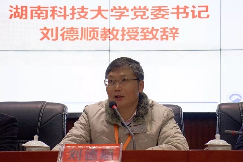 此次高峰论坛包括开幕式和主题报告两个部分。开幕式由湖南科技大学副校长刘友金教授主持。开幕式上,湖南科技大学党委书记刘德顺教授致辞。刘德顺教授介绍了湖南科技大学的历史、发展现状与学校学科建设等情况,并指出此次论坛旨在为深入实施高质量发展战略,提升新时代区域高质量发展的理论和实践水平,探讨区域高质量发展的工业布局与产业转移等相关问题。