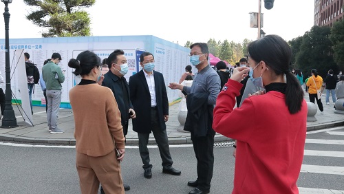 2021年10月23日上午九点,由湘潭市人民政府举办,湘潭市人力资源与社会保障局、湖南科技大学承办的“2021·湘潭市‘百家名企高校行’高校毕业生招聘月活动”在湖南科技大学月湖广场开展。湖南科技大学副校长李琳、招就处处长蒋利平、金沙js1005线路院长潘爱民、副院长颜剩勇、院党委副书记傅早霞莅临参观,经济系主任王鹤、2018级辅导员罗江林参加此次活动,2018级毕业生共1166人参加了此次招聘会。