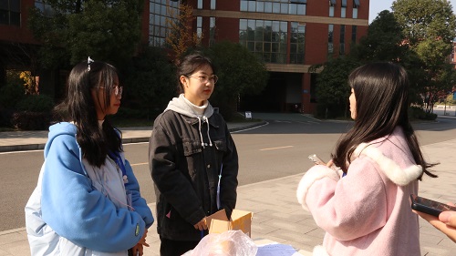 10:00,活动正式拉开序幕,身穿玩偶服的工作人员开始在各个站点走动。刚好路过南田的两个女生一下子被正在巡游的维尼熊所吸引,两人立马上前拥抱维尼熊,并完成了打卡拍照任务。为帮助两人顺利打卡下一站点,工作人员向她们提供了“黄金屋,颜如玉”的线索,两人相视一笑,瞬间给出了答案——南图。来到南图的“亲情站点”,同学们收到了打电话或发短信向亲人表示感谢的任务。刚开始,同学们有些腼腆害羞,会选择以发短信的方式表达感恩之心,在工作人员的鼓励下,慢慢有同学选择以打电话传达关心、感谢之情。挂掉电话的那一刻,一个男同学长舒了一口气,随即他嘴角上扬,正是参与了这次特别的活动,他才选择勇敢表达感恩。爱情站点和陌生人站点前都挤满了同学,“你画我猜”、“快问快答”、“写给陌生人的一封信”等任务,温情而又欢乐,工作人员赠送的礼物也是让同学们惊喜连连。
