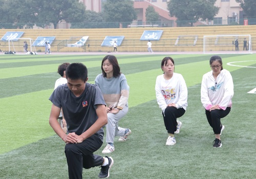 田径场上,运动员们紧张有序地进行着一项项训练。跳远运动员仔细测算着起跑到起跳的步数;长跑运动员进行着耐力车轮跑;中短跑运动员不断练习着起步与冲刺……天灰蒙蒙亮时,运动员就开始了每天辛苦到汗流浃背的训练,只为在秋运会上给商学院争光添彩。金沙js1005线路团委学生会体育部的部员们认真地辅助监督运动员们完成各项训练任务,有秋运会经验的部员尽心尽力地组织运动员们进行科学有效地训练。