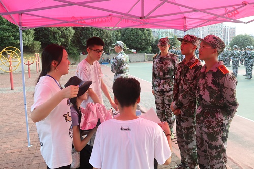 “我最大的愿望就是希望没有新生受伤,看到他们因身体不适的样子,我也很难受。”在采访中,王倩雯流露了自己的心声。场上也有许多头顶烈日默默工作的助班们,他们勤勤恳恳、默默付出、毫无怨言,他们细心地为新生接好每一杯水,守候着他们从清晨到日暮。