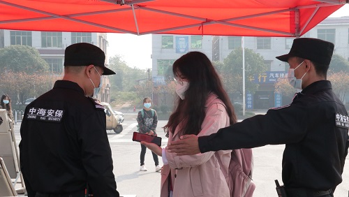 演练随即开始,辅导员蔡美玲得知2021级会计学专业二班在第一教学楼101教室上课时,班上有一名学生的健康码由绿码变成了红码,于是立即有人报告了金沙js1005线路党委副书记傅早霞以及校医院的李双老师。防控人员到达现场后,为同学们发放口罩,测量体温并带领红码同学进行隔离观察。在场景二中,负责人行通道的李毅在南校门经查验发现某同学体温异常,便立即带领该同学到临时医学观察区,组织值班保安对南校门口实行**毒,并进行上报。李双老师立即安排专车运送该同学至湘潭市中心医院发热门诊就诊,并通知同宿舍的同学在寝室隔离。