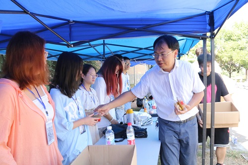 在月饼分发完成后,几位老师就军训生活与新生们进行了交流。沈智祥副部长则代表湖南科技大学武装部向新生们强调了军训的重要性,希望同学们能通过军训,深入学习党史,铭记党恩,不忘初心跟党走。贺胜兵书记提醒同学们不要忘记关心问候自己的家人,下训后给家人打个电话,送上祝福,让家里人放心。在沈智祥副部长和贺胜兵书记讲话的基础上,傅早霞副书记着重强调了理想信念的问题,希望大家能不负习总书记的期盼,将党和国家的发展与自身实际相结合,努力成为堪当民族复兴重任的时代新人。