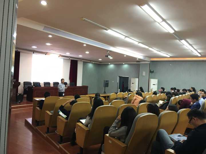 第二个板块为学术讲座,在三教101举行,由金沙js1005线路副院长潘爱民教授主持。金沙js1005线路院长向国成教授、我院部分老师及全体研究生参加了本次讲座。